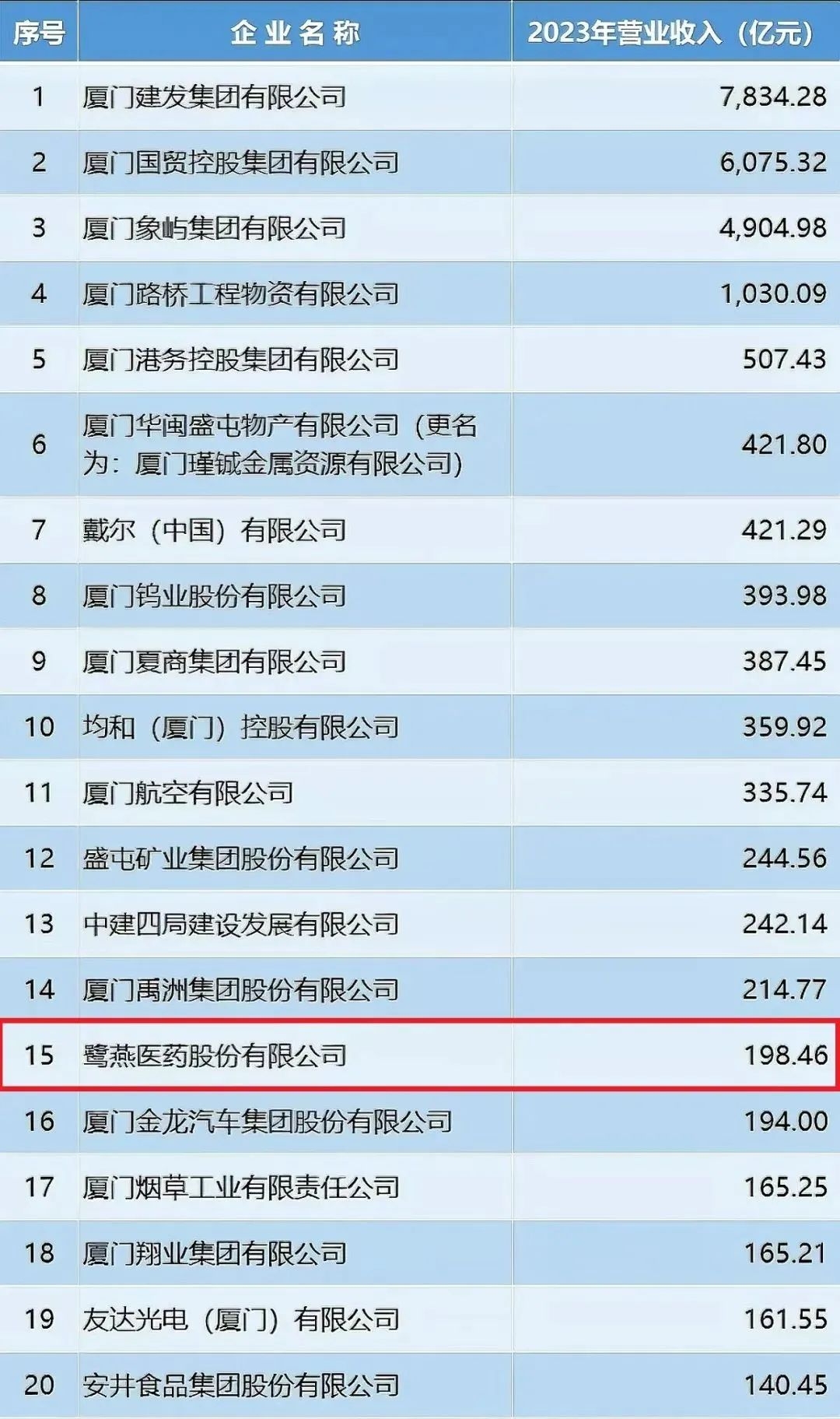 2024廈門企業百強揭曉,鷺燕醫藥榮列第15位!